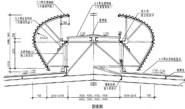 5.4通风天窗适用于钢结构建筑,与适用于钢筋混凝土框,排架结构建筑,选用时应注明。如用在钢筋混凝土结构屋面,应在相应部件位预埋连接用钢板埋件。
