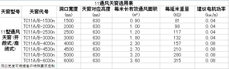 3.1. 11型薄型通风天窗 代号:TC11A/B-N(可定制多种尺寸)。